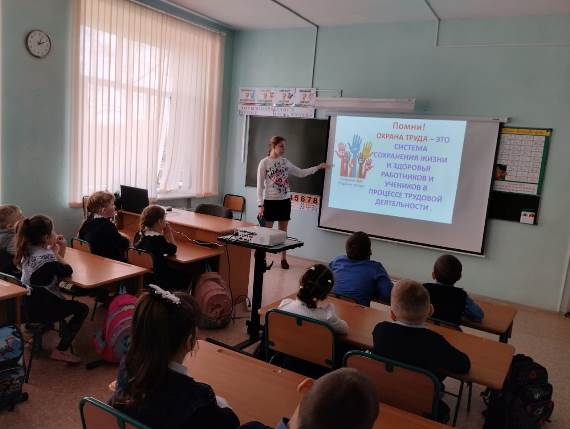 В рамках месячника по охране труда в 1 классе прошёл классный час. День Охраны труда отмечается 28 апреля. Ребята узнали, что такое охрана труда, какие правила нужно соблюдать, чтобы избежать травм.
